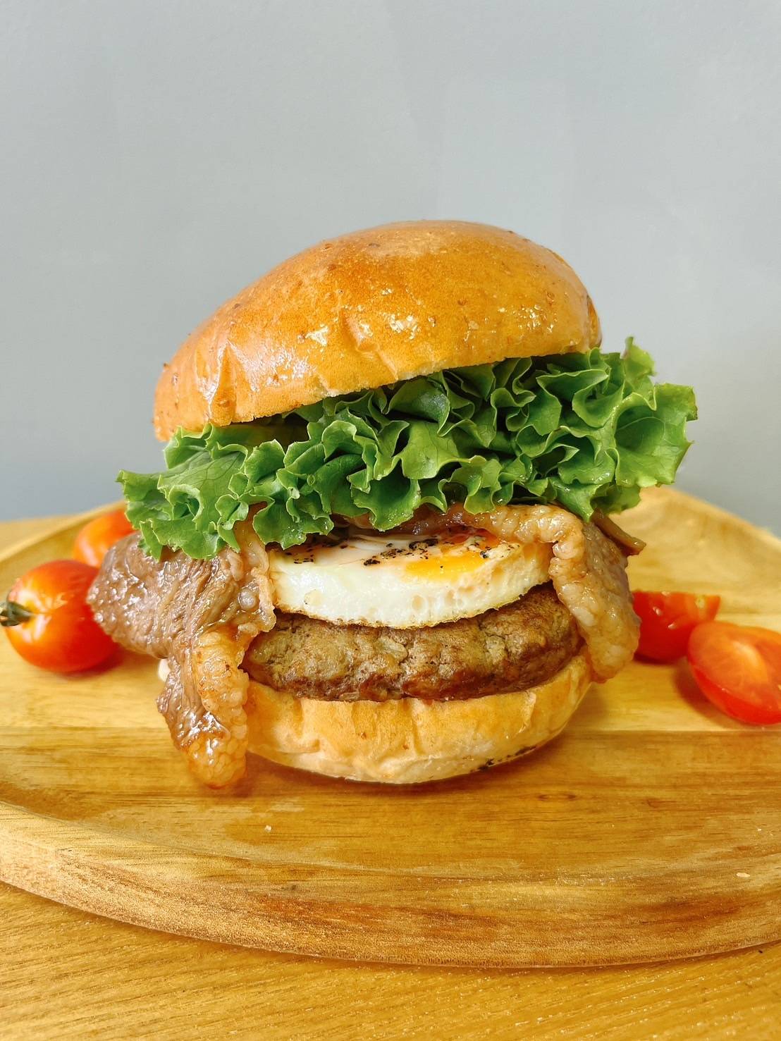 広島名物の希少部位コウネをサンドしたハンバーガー、研究を重ねた 特製ソースで召し上がれ♪