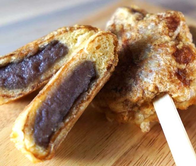 宮島名物「もみじ饅頭」をカリっと揚げた大人気ご当地グルメ。